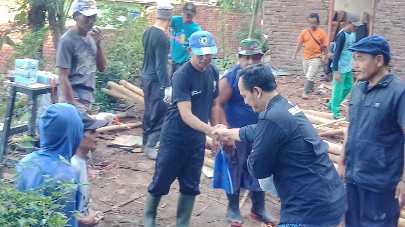 “Jadi kita kasih 50 snack buat kerja bakti warga yang sedang memperbaiki rumah yang terkena longsor di Desa Gunasari,” terang Gagan.